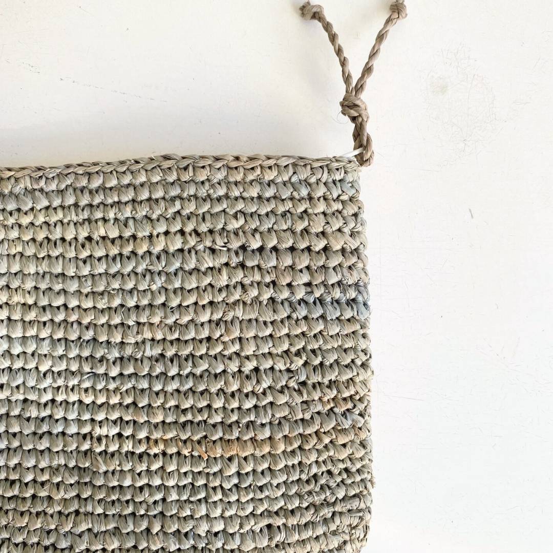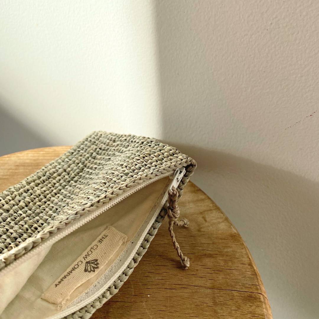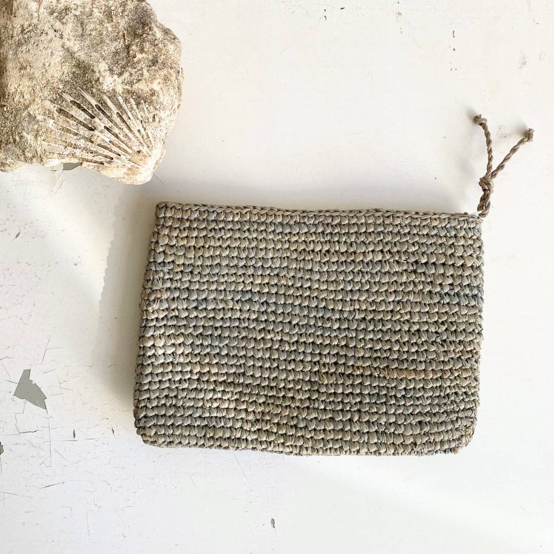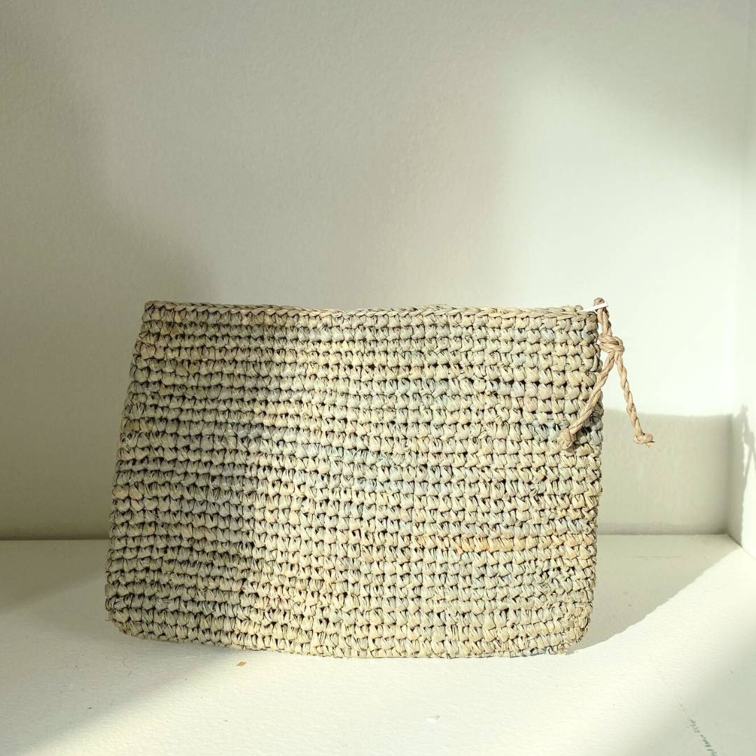 - Notre pochette en raphia est fabriquée à la main dans notre atelier partenaire à Madagascar