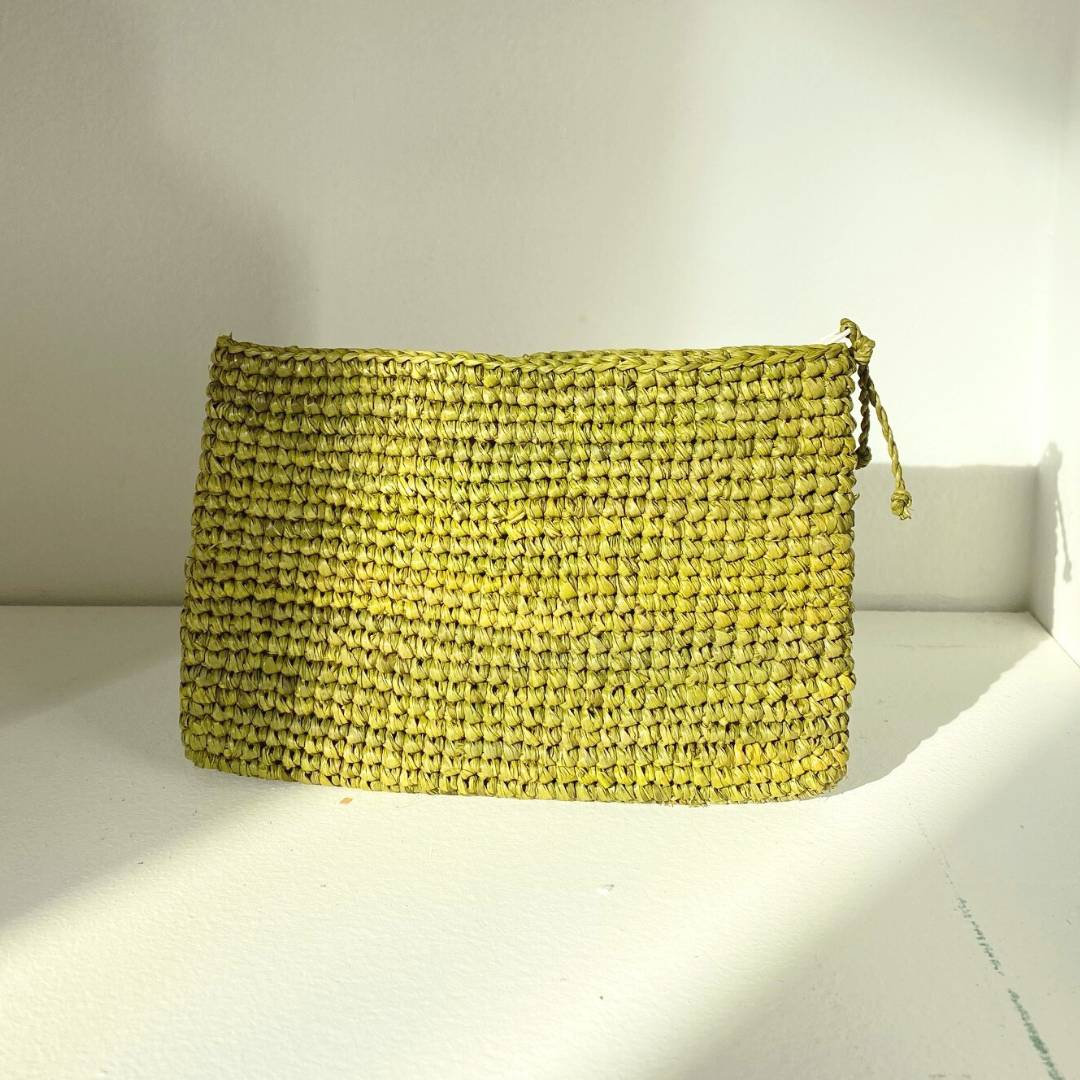 - Notre pochette en raphia est fabriquée à la main dans notre atelier partenaire à Madagascar