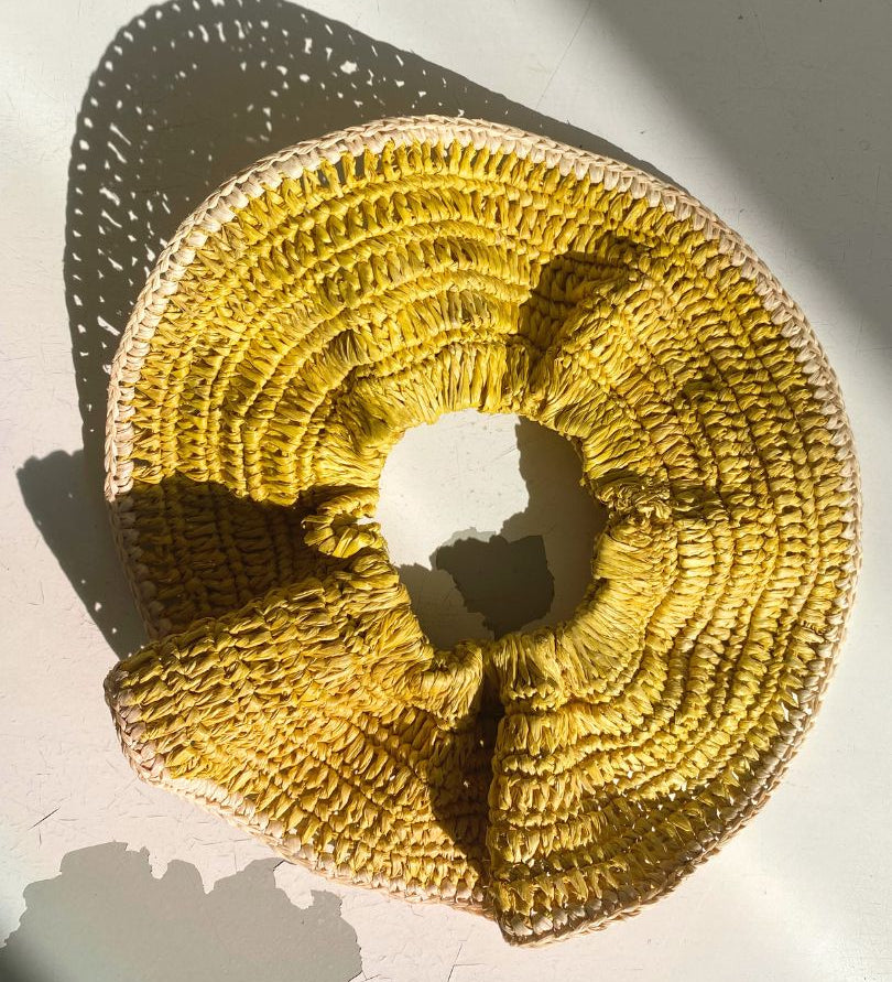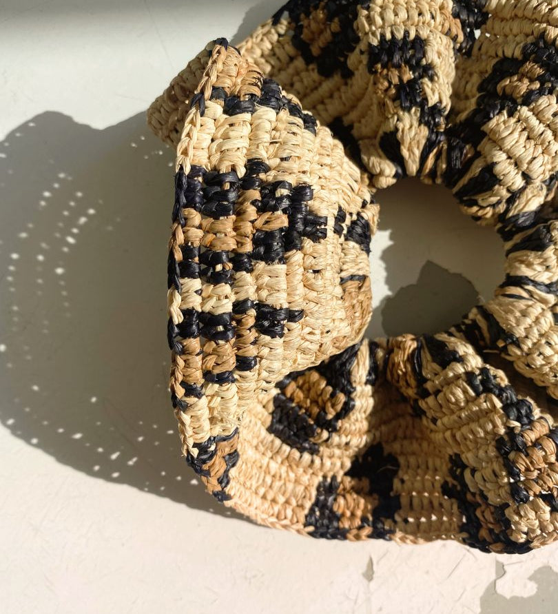 Nos chouchous sont fabriqués en raphia naturel et crochetés à la main, ce qui leur donne une texture unique souple avec beaucoup de tenue.
