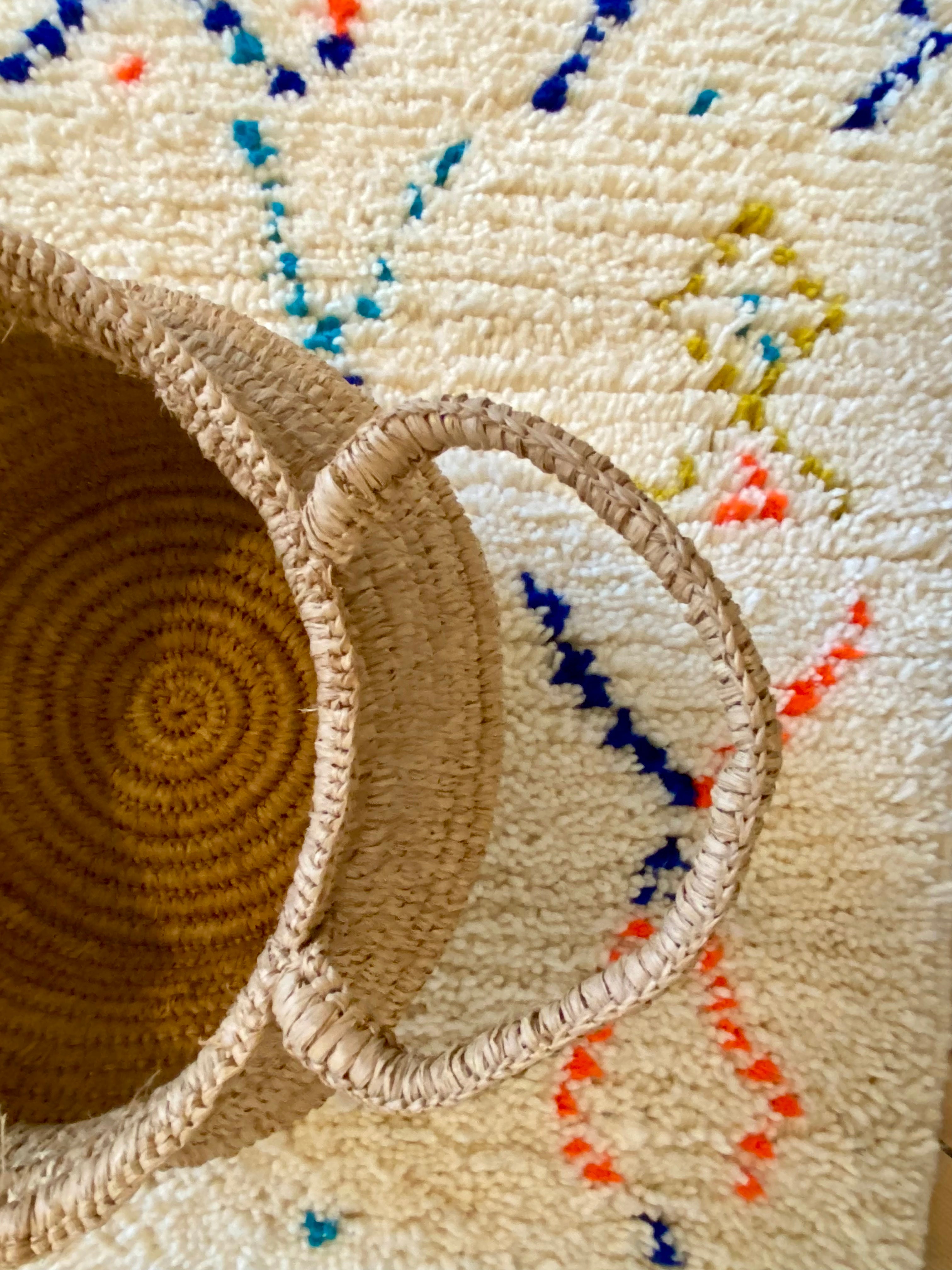 - Anses latérales en raphia enroulé solides et confortables