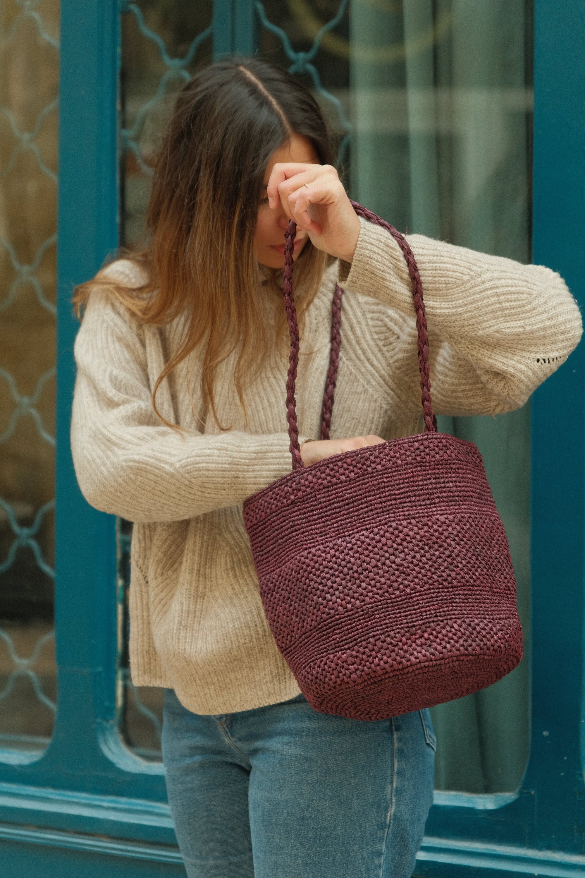 - Anses en tresse de raphia enroulée pour plus de confort