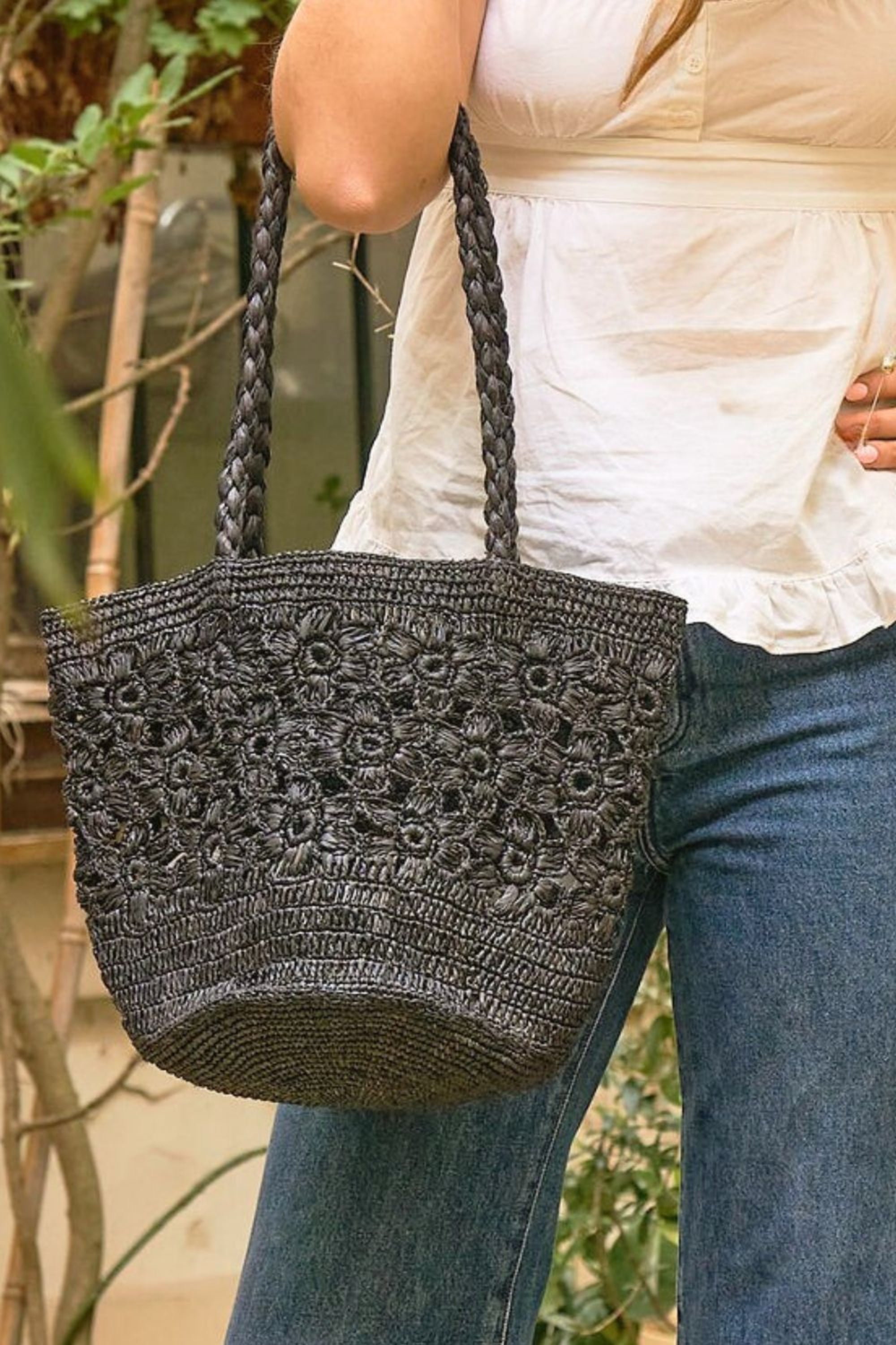 - Crochet de raphia ajouré en forme de fleurs