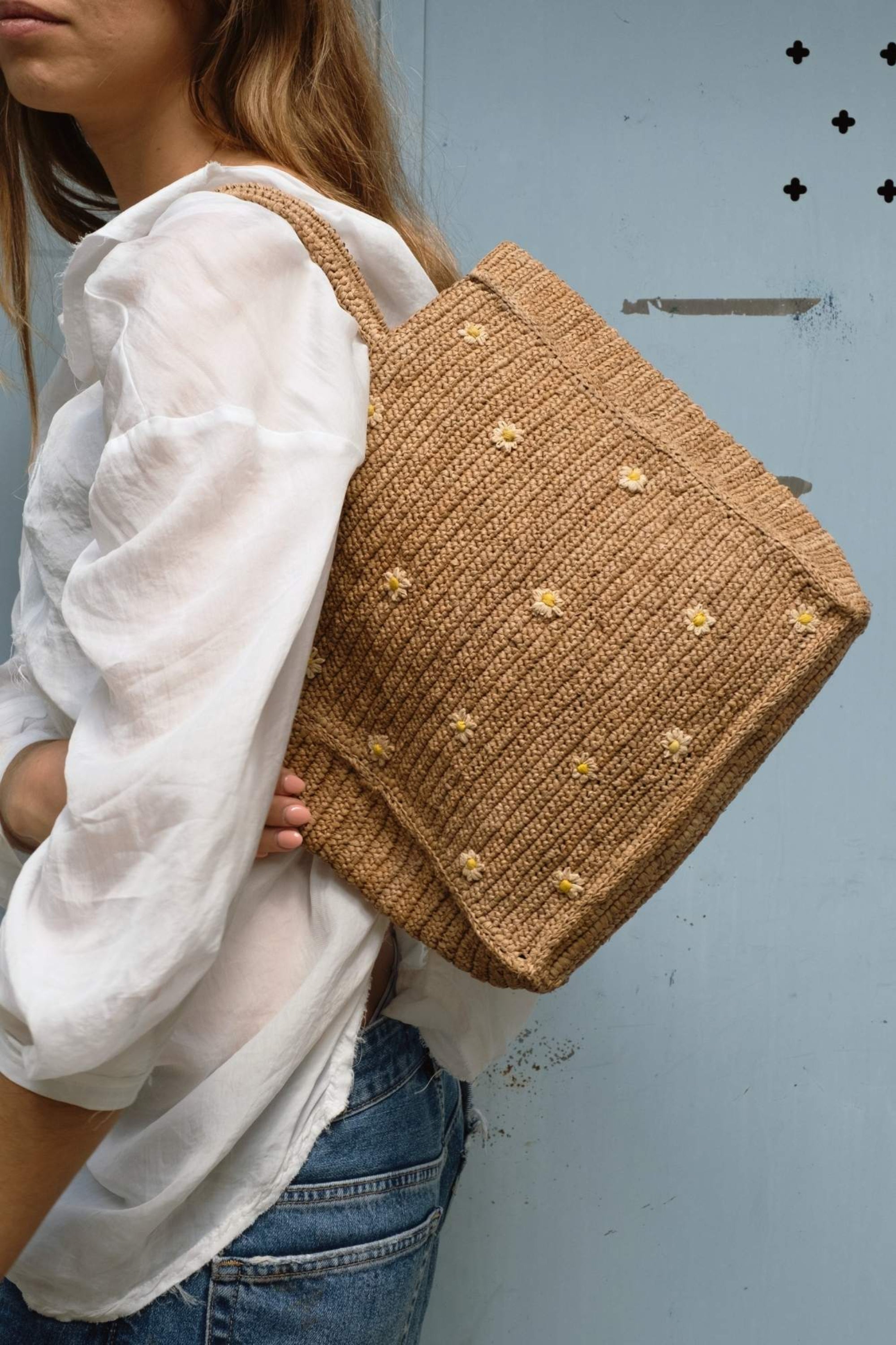 Accueillez les beaux jours avec LÉONIE, un sac en raphia crocheté et brodé à la main, orné de pâquerettes en raphia. Son charme bucolique et son inspiration printanière en font un accessoire unique et intemporel, parfait pour sublimer vos tenues avec une touche de fraîcheur et d’élégance. Alliant deux savoir-faire artisanaux de Madagascar – le crochet et la broderie – ce sac met à l’honneur un travail minutieux qui garantit un rendu authentique et raffiné.