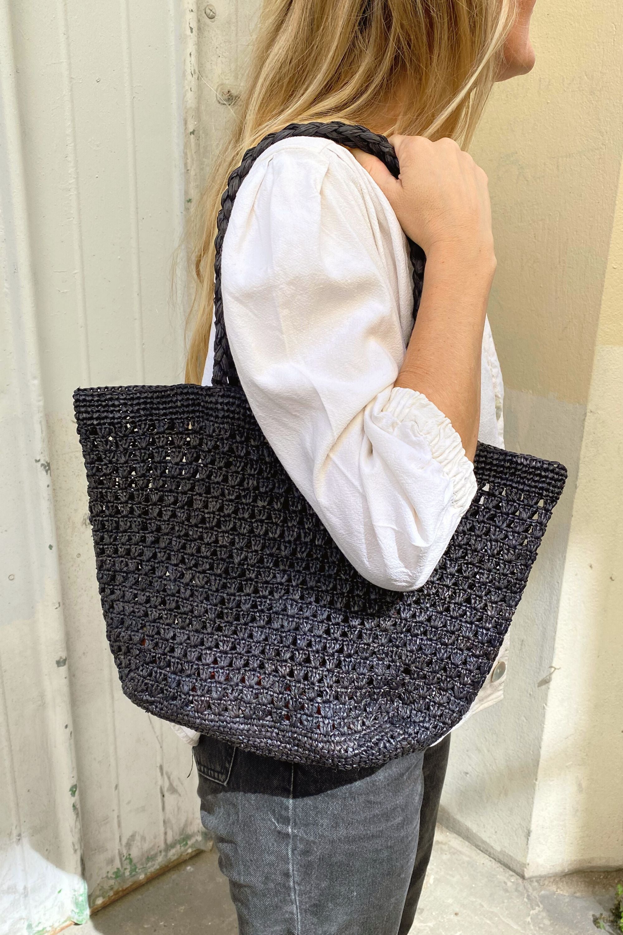 - Anses: tresse de raphia enroulée pour plus de confort