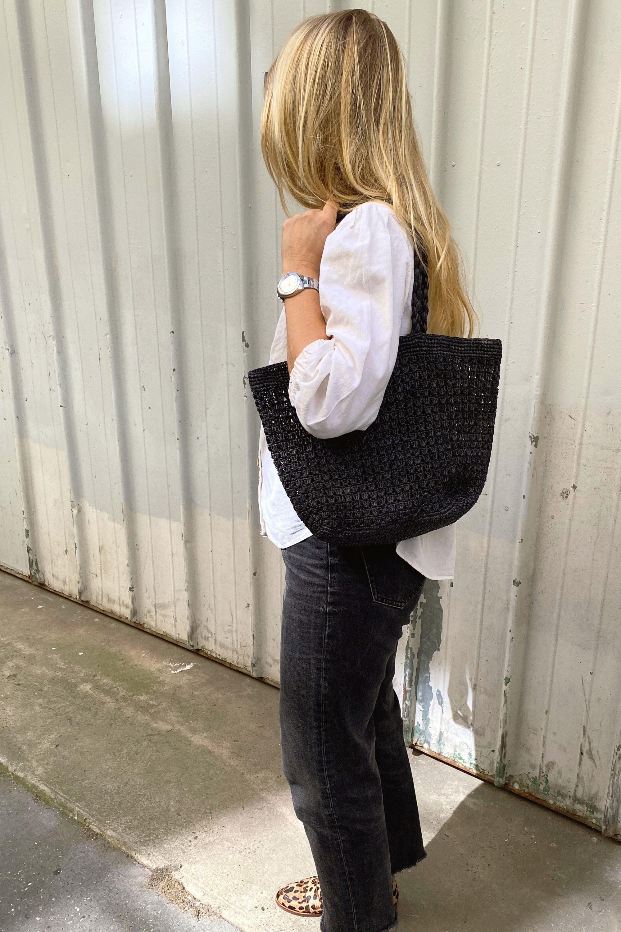 - Poche intérieure et accroche en raphia pour vos essentiels