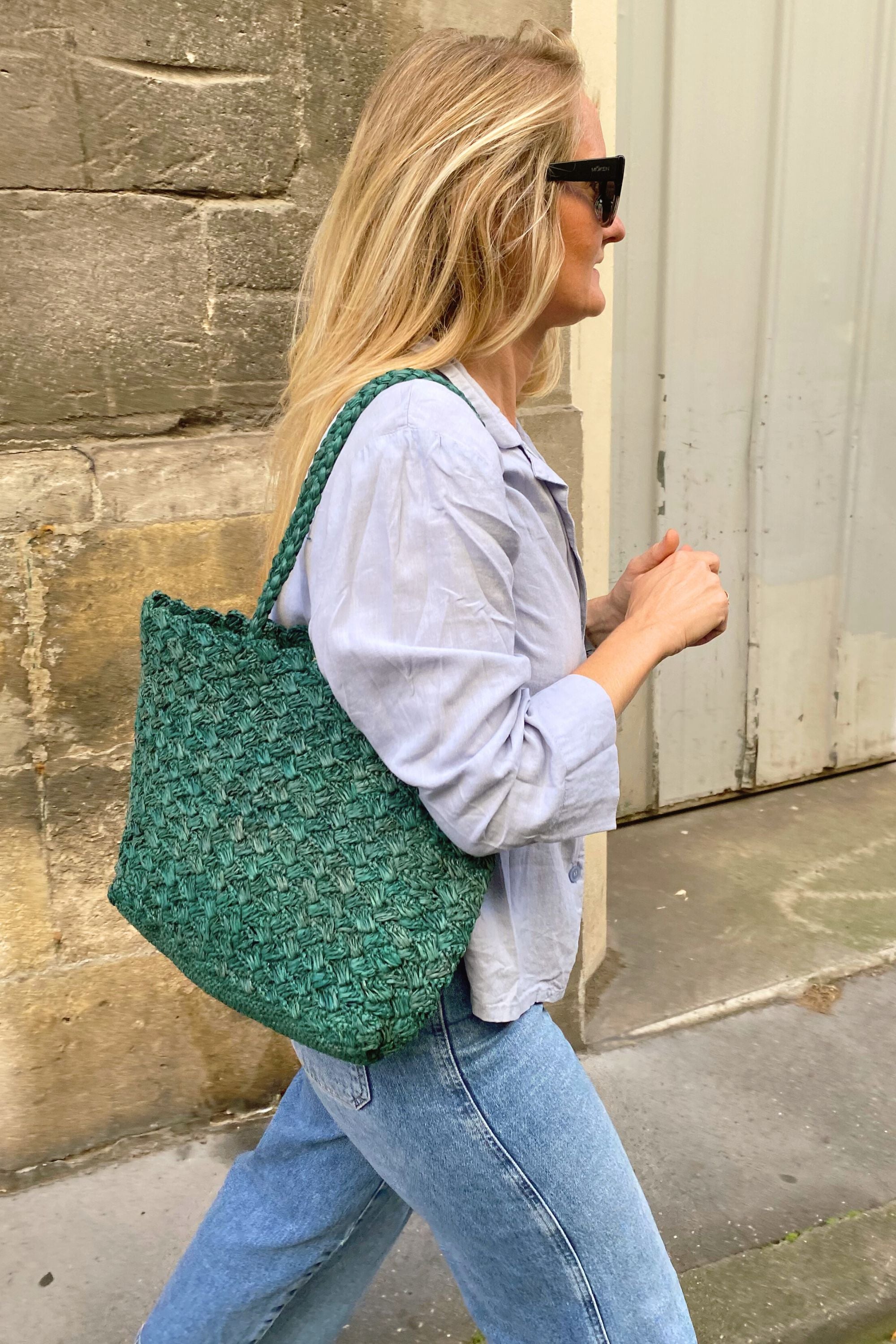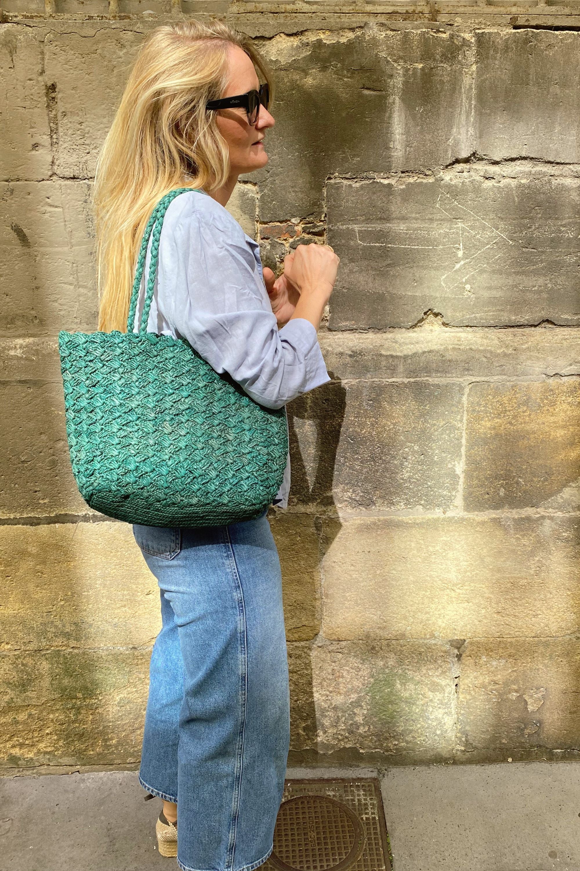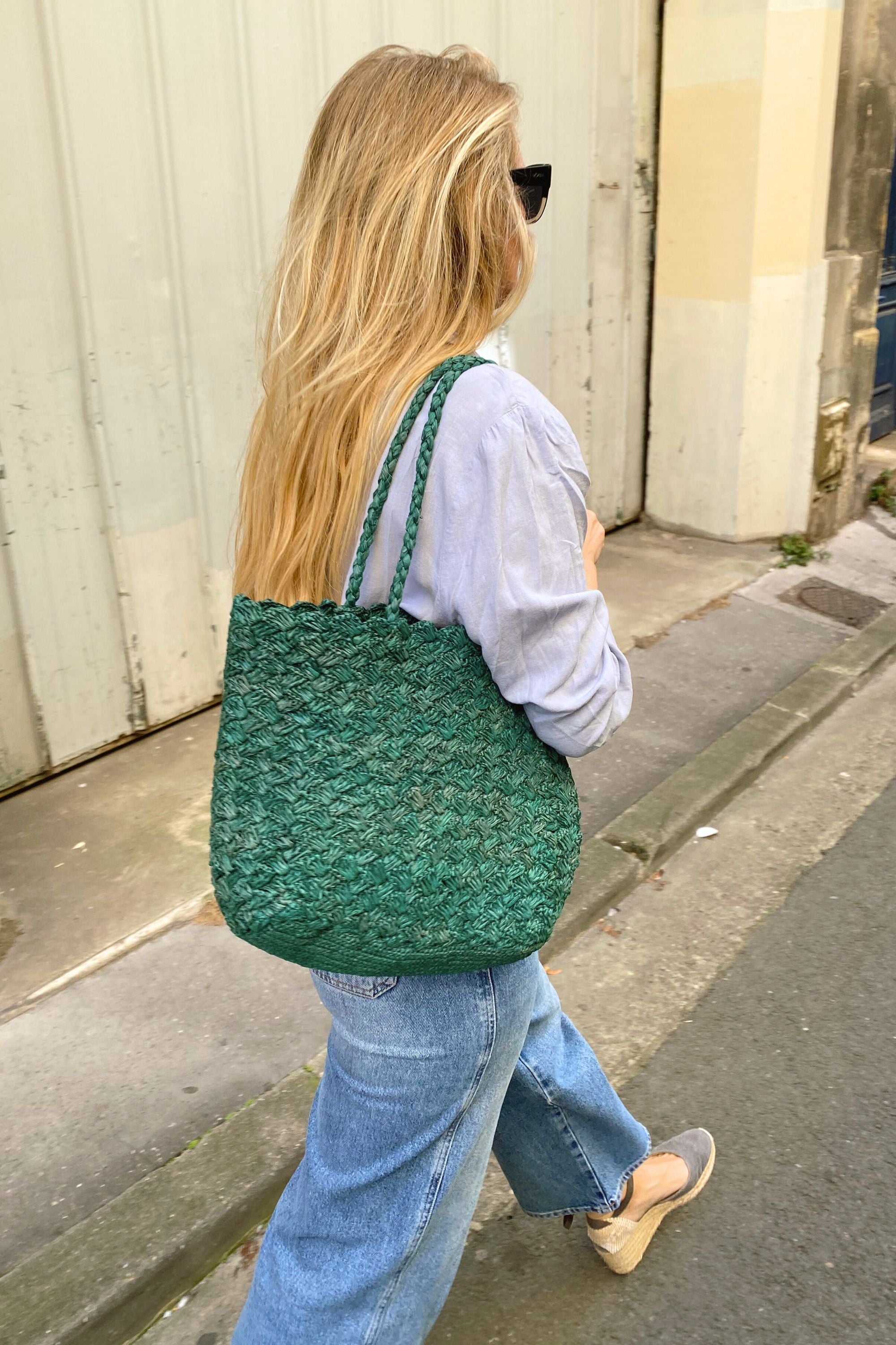 - Poche intérieure et accroche en raphia pour vos essentiels
