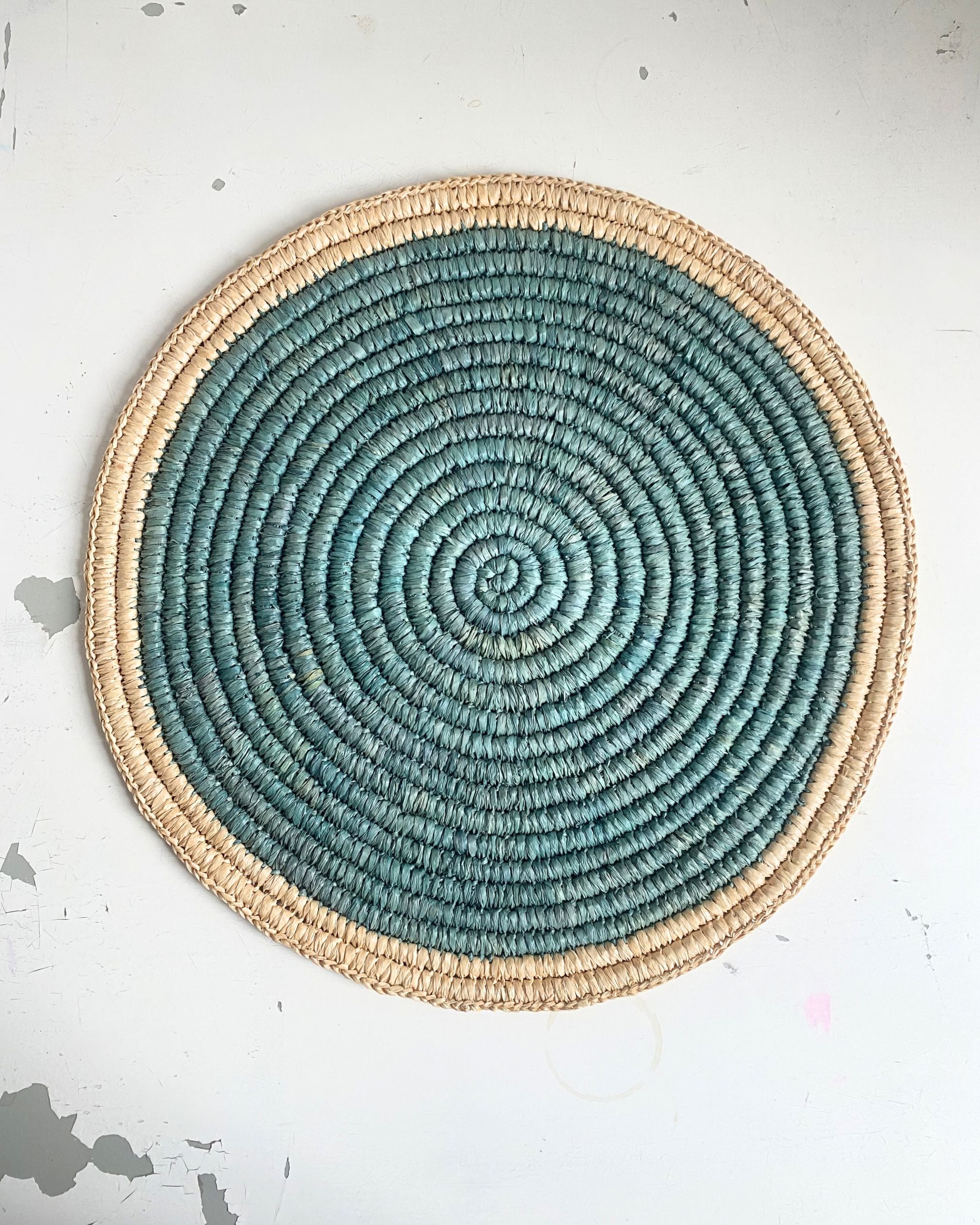 - Technique: fibres de raphia enroulées