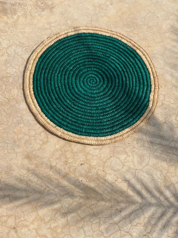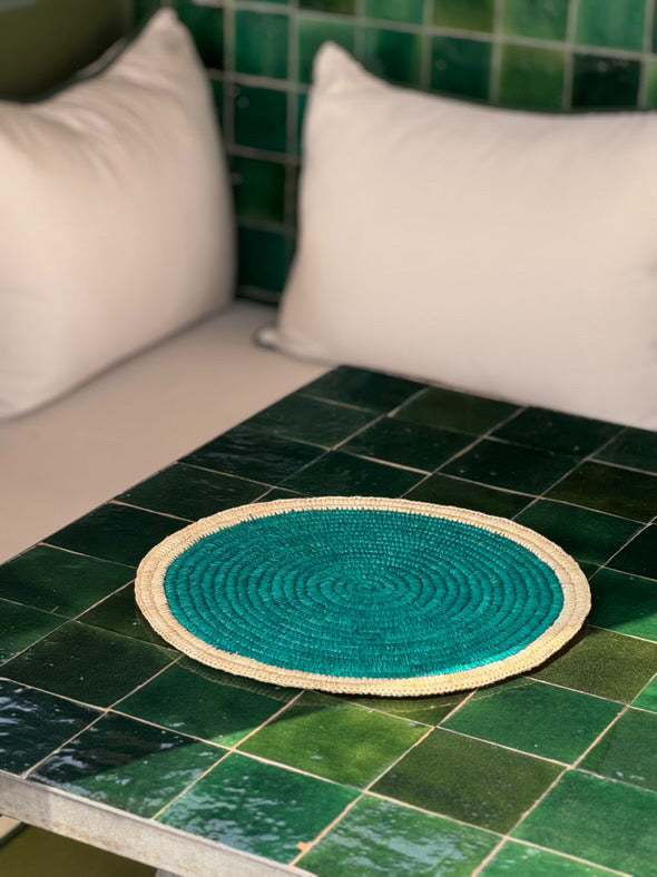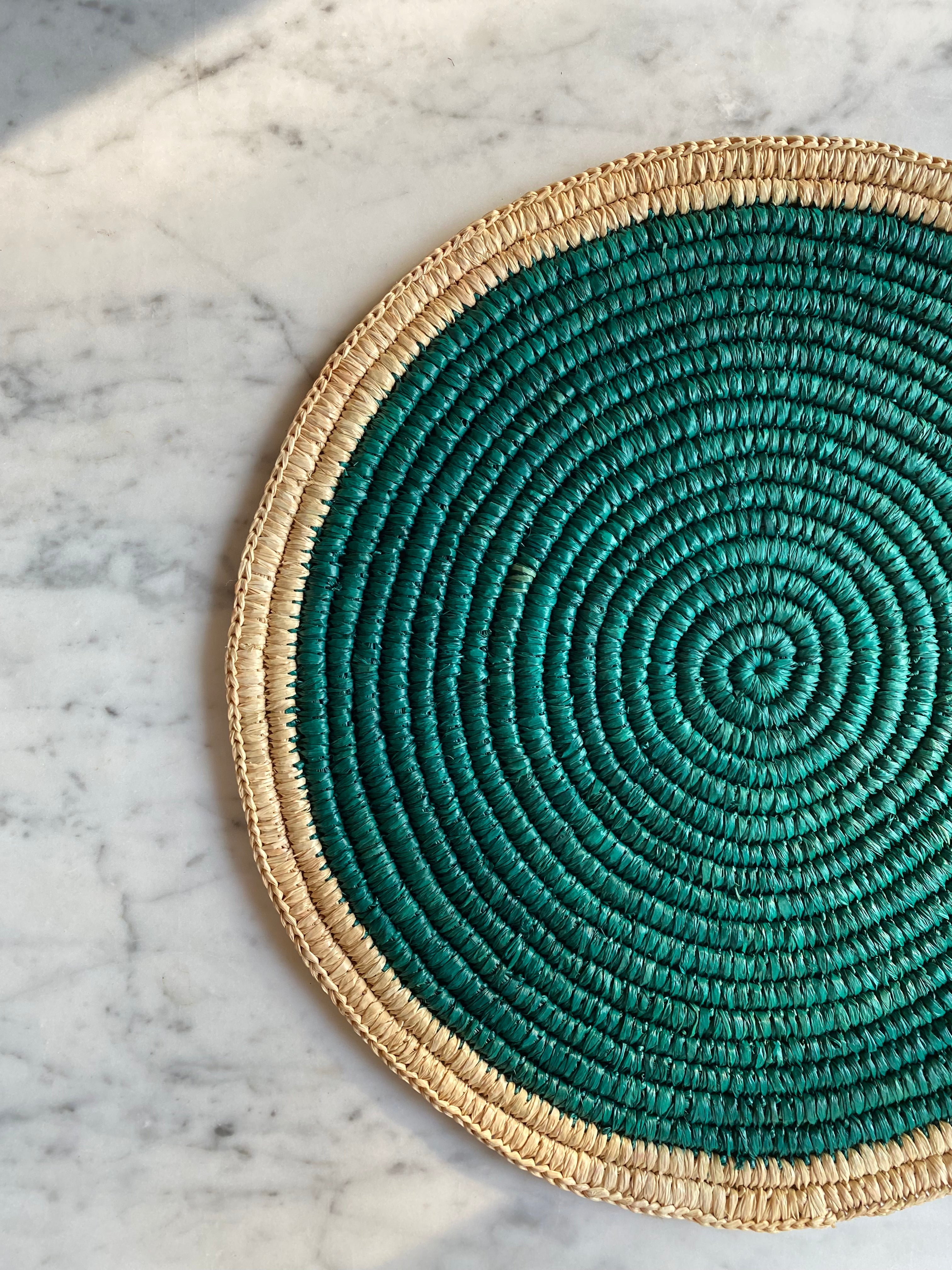 Le set de table ÉCLIPSE en raphia enroulé avec son centre de couleur: la rencontre de style et d'authenticité pour votre table à manger. Fabriqués à la main dans notre atelier partenaire, ces sets de table ronds en raphia enroulé mettent en valeur le charme naturel de la fibre de raphia. Son centre de couleur en fait un accessoire de table unique, qui rehaussera la décoration de vos tables!