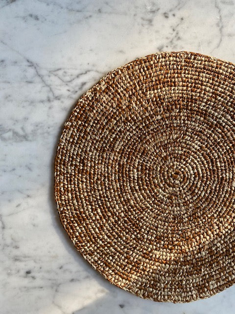 Le set de table ASTRÉE en crochet de raphia avec son motif en raphia chiné apportera du caractère à toutes vos décorations de table. Fabriqués à la main dans notre atelier partenaire, ces sets de table ronds en raphia mettent en valeur le charme naturel et élégant de la fibre de raphia.