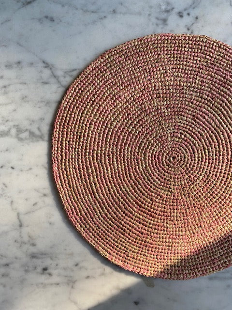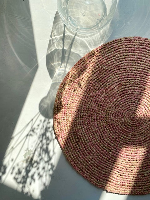 Le set de table ASTRÉE en crochet de raphia avec son motif en raphia chiné apportera du caractère à toutes vos décorations de table. Fabriqués à la main dans notre atelier partenaire, ces sets de table ronds en raphia mettent en valeur le charme naturel et élégant de la fibre de raphia.