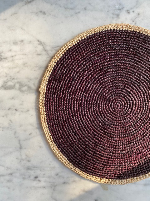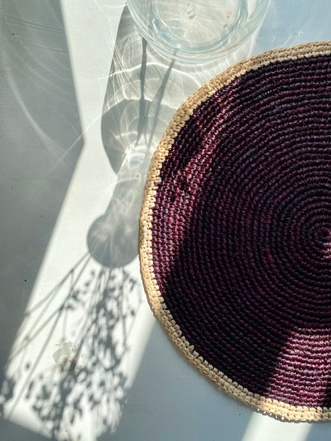 Le set de table CÉLESTE en crochet de raphia avec son centre coloré apportera du caractère à toutes vos décorations de table. Fabriqués à la main dans notre atelier partenaire, ces sets de table ronds en raphia mettent en valeur le charme naturel et élégant de la fibre de raphia.