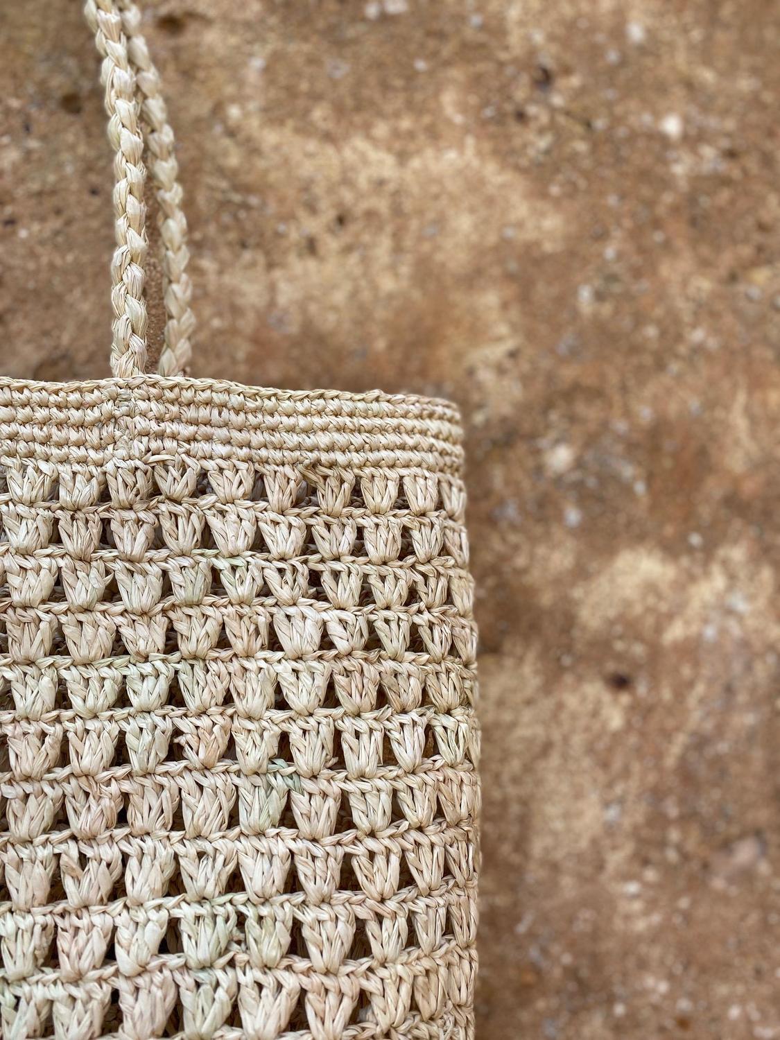Sac cabas ajouré en raphia « point coquille » cannelle